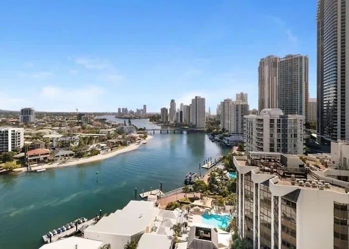 ゴールドコーストの中心に位置する寝室1室のアパートは、キャビル・アベニュー少し離れたです。 アパートはスカイポイント展望台からわずか0.7kmの場所にあります。 Skyline Serenityアパートから自動車で10分のところにあるマリナーズ・コーブ・マリーナにも行くことができます。